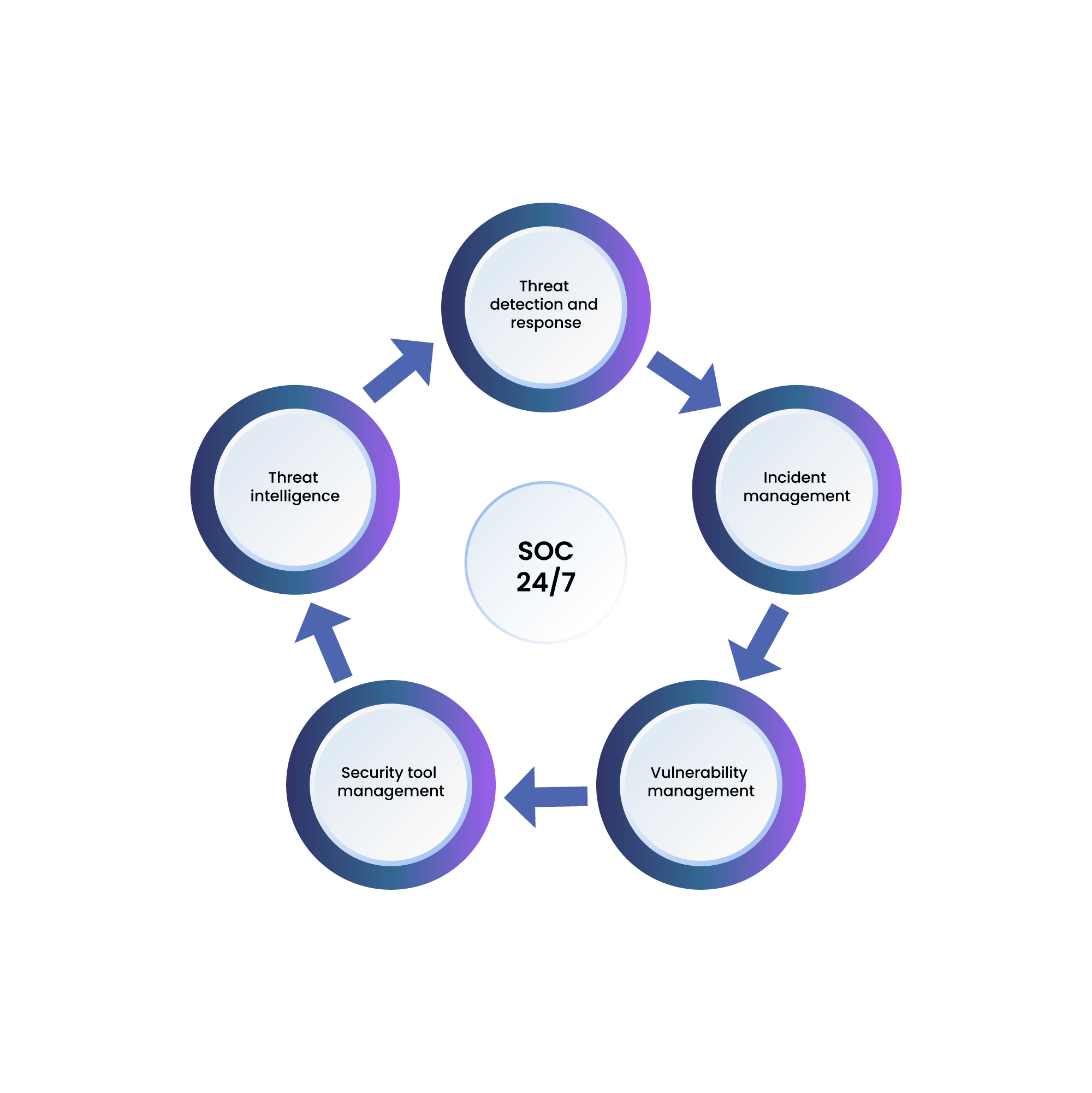 The SOC plays a critical role in an organization's cybersecurity strategy by providing 24/7 monitoring and response to potential security threats. By identifying and responding to security incidents in real-time, the SOC helps to minimize the impact of cyber-attacks and protect the organization's data, systems, and reputation.The key functions of a SOC include: Threat detection and response, Incident management, Vulnerability management, Threat intelligence, Security tool management to name a few.